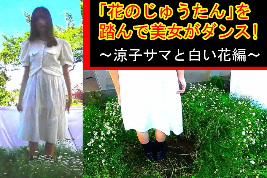 白い花(クリサンセマム)が咲き乱れる「花のじゅうたん」。キラキラした女の子・涼子サマがその「花のじゅうたん」を踏んで音楽に合わせて軽快にダンス!花を踏んでのダンスをいろんな角度から撮影!付録映像にSS-112に登場した女子大生・美希様による「花踏... -